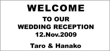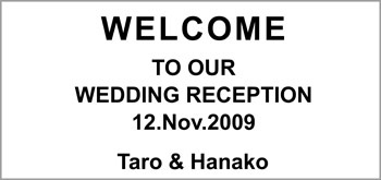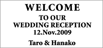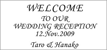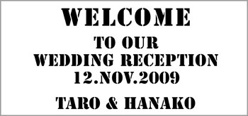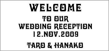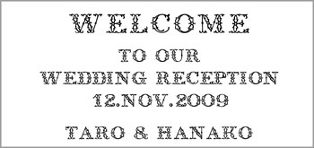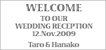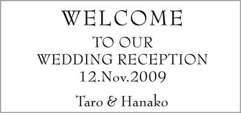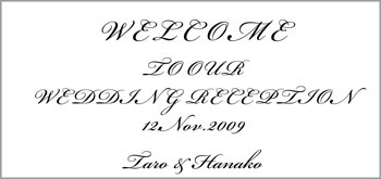 【ご記入例】 「WELCOME」は字体1、「TO OUR WEDDING RECEPTION」を字体2、日付は字体3、名前は