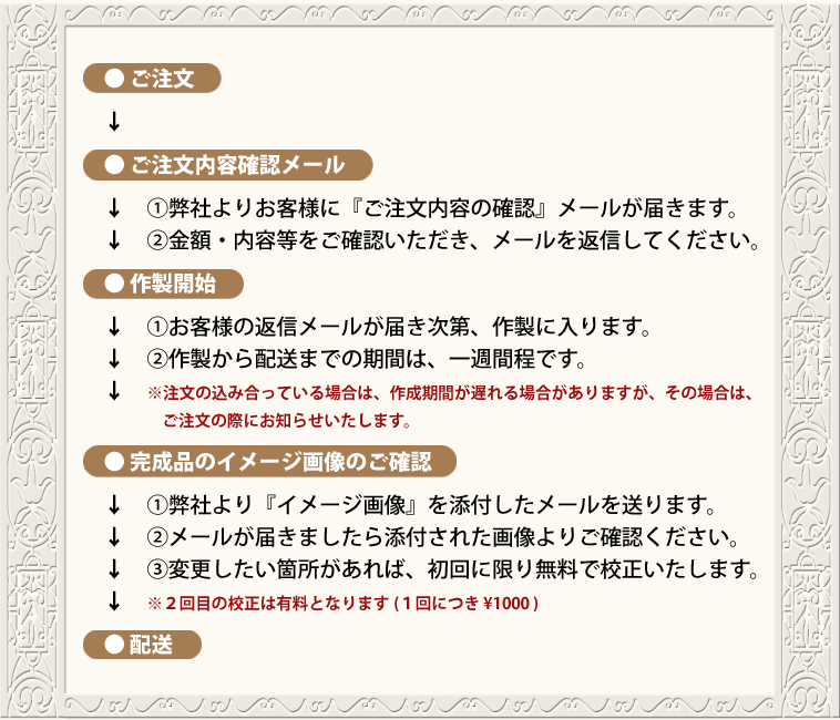 ■作製開始からのキャンセルには、全額お支払いいただくことになります。